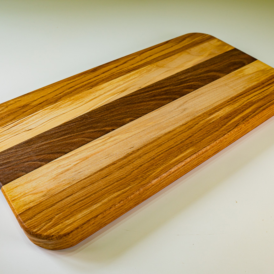 I produce a range of chopping boards in various shapes, sizes and styles, round, square, rectangular, elliptical, odd shaped to bring out the best in a board, and natural edged boards where the bark is removed off one side to leave the natural shape of the tree.
