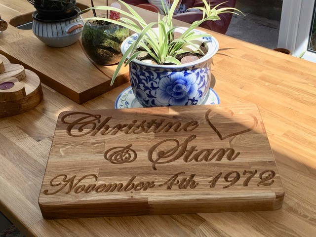 Have a special wedding anniversary coming up particularly your 5th anniversary being wood? or stuck for a gift for that special friend or relation, how about a bespoke chopping board that they can keep for many years to come. Starting from £80.00 get in touch lets see if there is anything we can help you with.