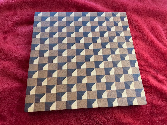 end grain 3D affect board aprox. 27 x 27 x 3 cm something very different to admire and use in modern or traditional style kitchens