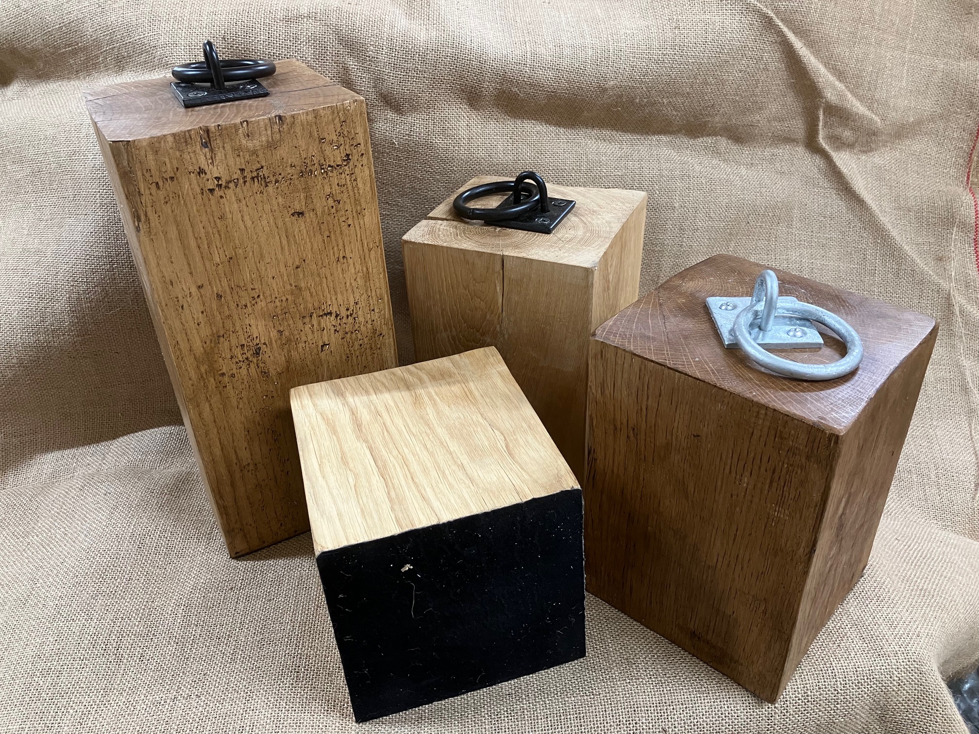 chunky solid oak door stops with hoop handle. These are solid oak aprox. 150 cm x 150 cm starting at 20cm tall ranging to 30cm tall as standard, taller door stops can be made on request. 20cm tall door stops are £25.00 taller 30cm £30.00. Choice of two finishes either natural wax finish (oak) or dark wax finish. When ordering please state size required and colour finish.