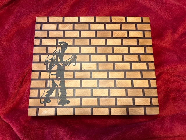 no3 in my new custom made graffiti series of bespoke timber chopping boards, brickwork end grain chopping board made from maple sapele with a walnut inlay aprox. 33.5 x 28 x 4.00 cm this can either be bought as it is or you can choose your own graffiti message that will bi inlayed into the design in walnut (from an additional £35.00, for names, initials, heart etc) size may vary slightly if custom made