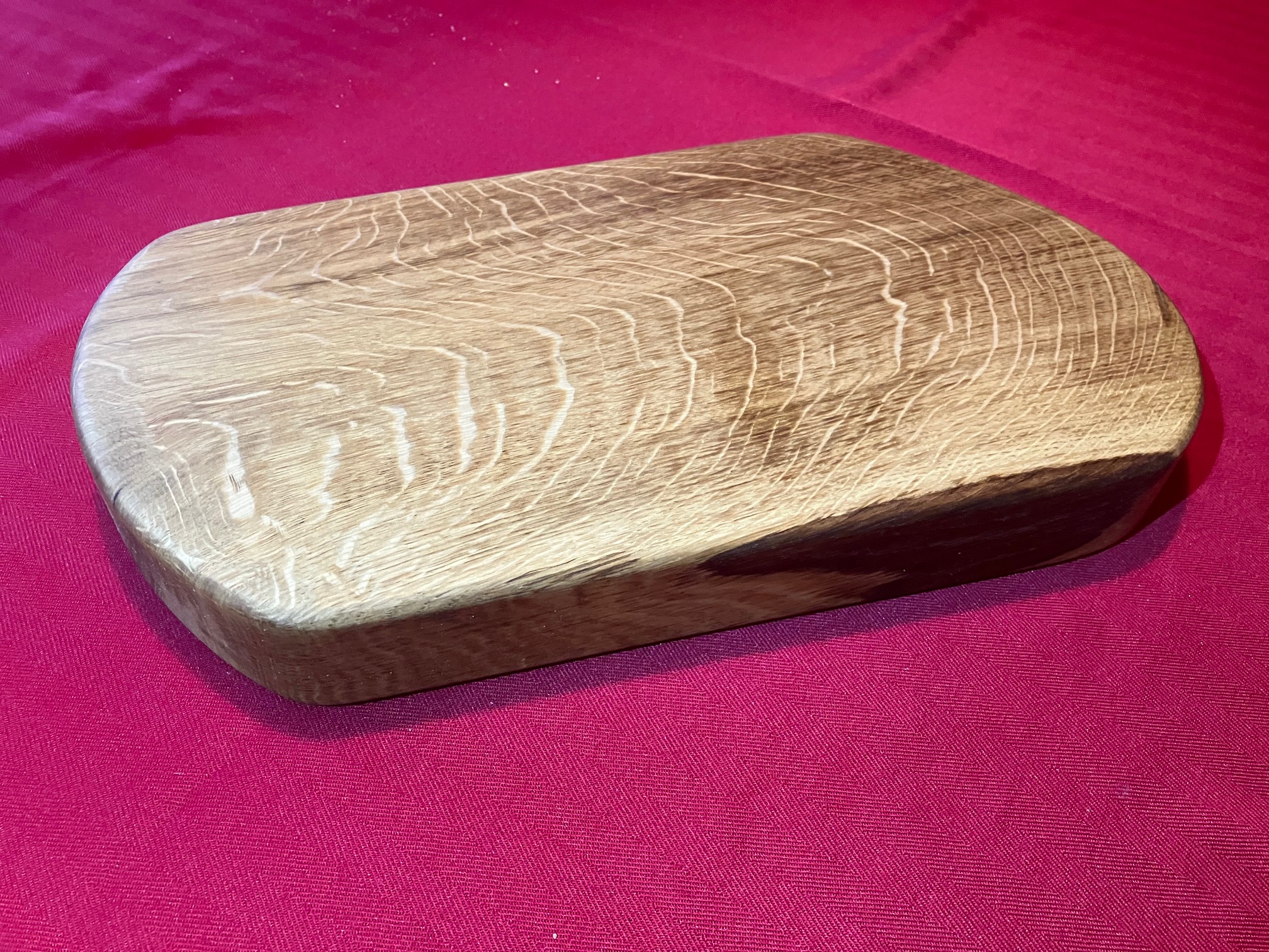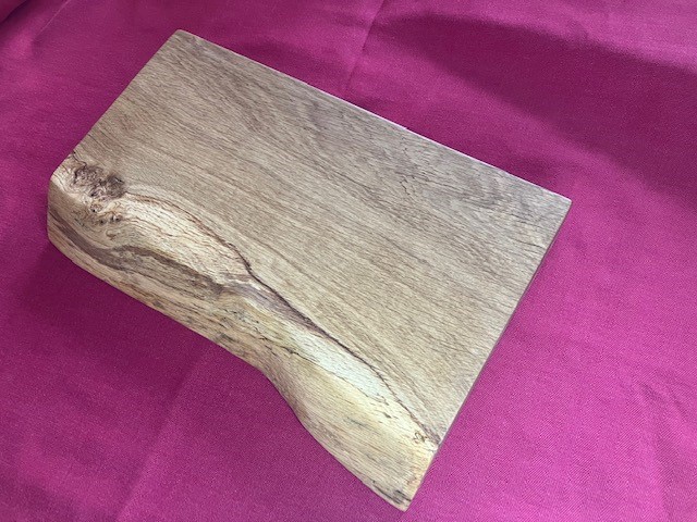 One of a few smaller solid oak natural edge boards we have measures aprox. 37.5 x 22 x 4.5cm thick board. fantastic patterned board and not too heavy